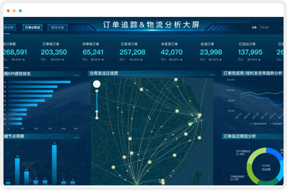 内置大屏模板,基于业务场景轻松制作专业美观的驾驶舱看板