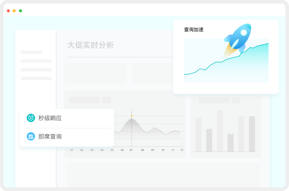 针对海量数据和高并发分析查询提供自动加速服务,为用户实现极佳的即席查询体验,亿级数据毫秒级响应